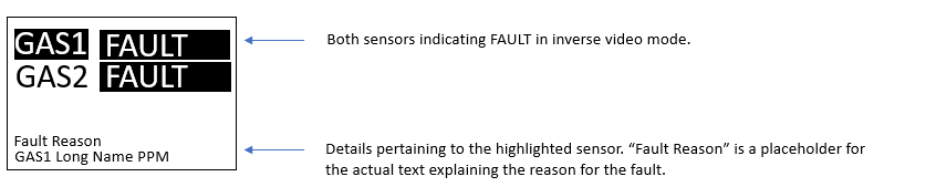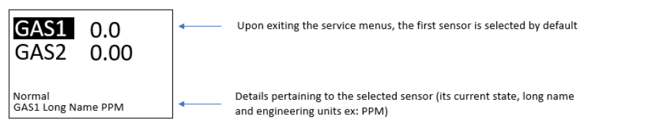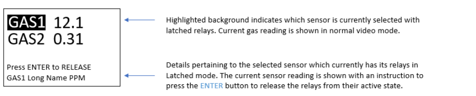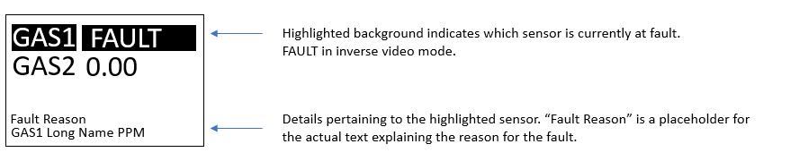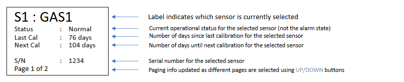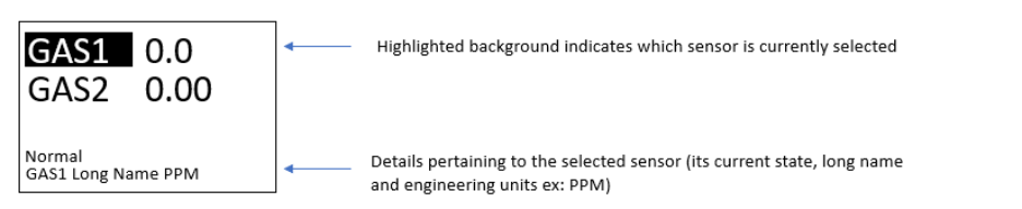 Displays Gas Concentration & Status Information. |