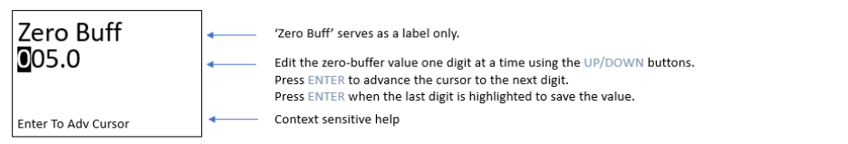 Zero buffering is a function of the monitor which forces the gas concentration reading to zero when sensor is exposed to low concentration of a gas. The zero buffer is indicated in the sensor specification. |