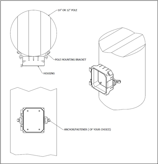 Enclosure and Lid Assembly, PC-ABS blend, 5.45” L x 6.14” W (140mm x 156mm) Wall Mount with two mount points. Option for Pole Mount. |